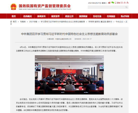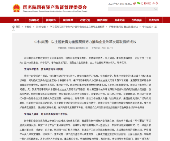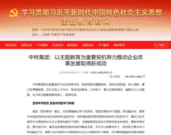 赞!中央主题教育官网、国资委官网、国资委主题教育简报聚焦中林集团主题教育成效 |