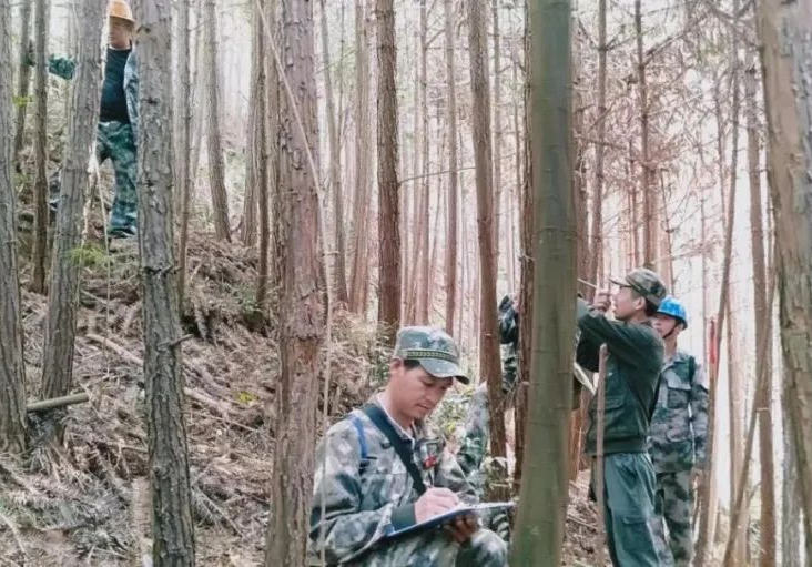 泰宁林区员工正在用角规测树调查