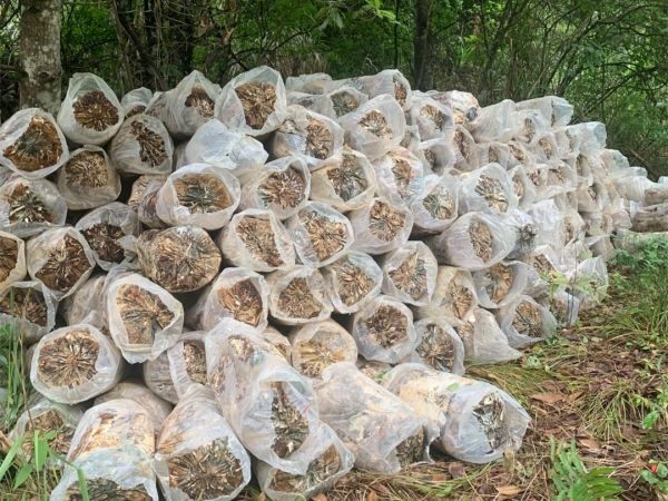 相较于传统的“段木窖栽”种植方式,松树蔸接种茯苓可以有效节约松木、增产提质,不仅能够起到变废为宝的效果,还能加快松树根部的腐烂速度,改善周围生态环境,为周围树种创造良好的成长环境和生存空间。同时,通过建立“央企+基地+农户”的合作模式,由农户接种、管护,达到成熟标准后,公司再统一采收销售。眼下茯苓种植基地迎来了集中采收期,采收下来的茯苓个头大、产量高、品质优,带动周边林农劳务用工3500余次,人均增收约2000元,真正实现不砍树,也能富的绿色发展之路。