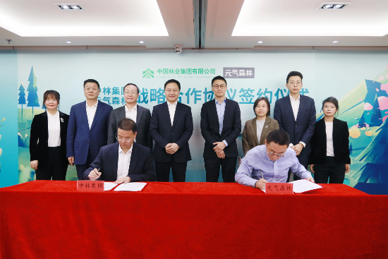 唐彬森表示,元气森林长期践行绿色可持续发展理念,打造环境友好、社会友好、用户友好的“三友好”战略目标。元气森林与中林集团在助推国家实现碳达峰碳中和目标方面有着共同的使命和愿景。期待双方围绕绿色发展理念开展多维度、全方位务实合作,共同探索林业碳汇经营新模式,实现生态效益、经济效益和社会效益最大化。