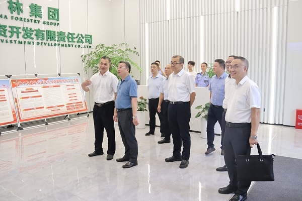 8月25日上午,重庆市政府副市长商奎到中林集团重庆林投公司,调研指导重庆国储林项目建设。他指出,重庆国储林项目要深入践行习近平生态文明思想,当好“两山论”的积极传播者和模范践行者,加快打造全国样板,聚力推进生态惠民,真正把绿水青山建设成为金山银山。重庆市林业局局长曹春华、副局长王声斌,重庆林投公司班子成员参加调研。