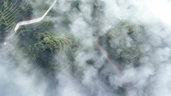 清晨的大巴山深处,云腾雾绕,青山葱翠。重庆市城口县国家储备林项目区,一片片森林绿意盎然,一排排树木笔直挺拔,这里如同一幅美丽的生态画卷。