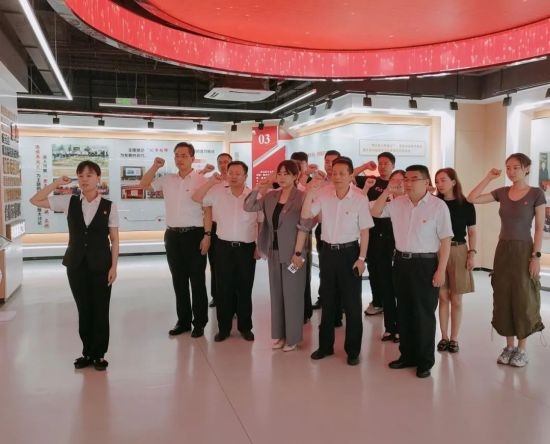 “七一”来临之际,国林双碳管理(杭州)有限公司组织开展“奋进新征程 建功新时代”主题党日活动。组织全体党员及青年干部参观中国共产党杭州历史馆,通过展馆内一张张照片、一份份剪报、一枚枚奖章等实物资料,进一步激发了党员的爱党、爱国热情,增强党员的荣誉感、使命感。活动最后,在鲜红的党旗下,全体党员高举右拳,一同重温入党誓词,再次许下对党忠诚的坚定承诺,传达初心不改、砥砺前行的决心。
