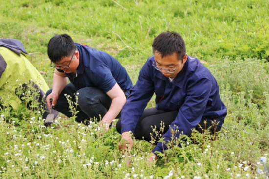 生态修复 人人有责 在林场集团所属中林生态环境科技有限公司种质资源圃,一线员工在划定区域内,蹲下身子、拾起工具,仔细清除枯枝、杂草,实施由公司确定的“全员种植计划”,为植物正常生长提供良好生境。(摄影: 张旭)