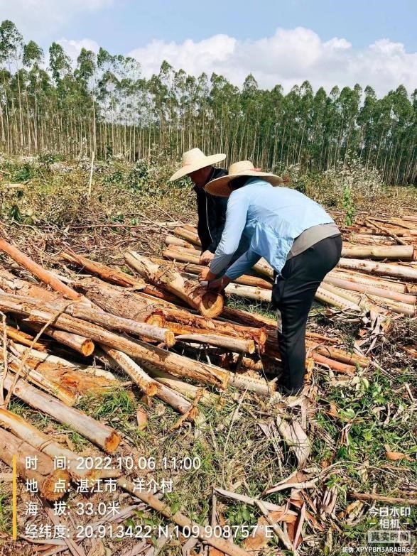 中林唐家林场分公司,国庆节值班人员坚守采伐工地,检查木材质量。