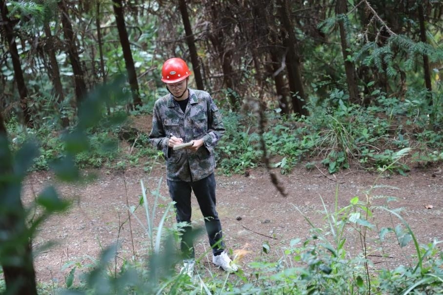 中林肇庆公司员工国庆期间开展实地测量国储林林木工作。